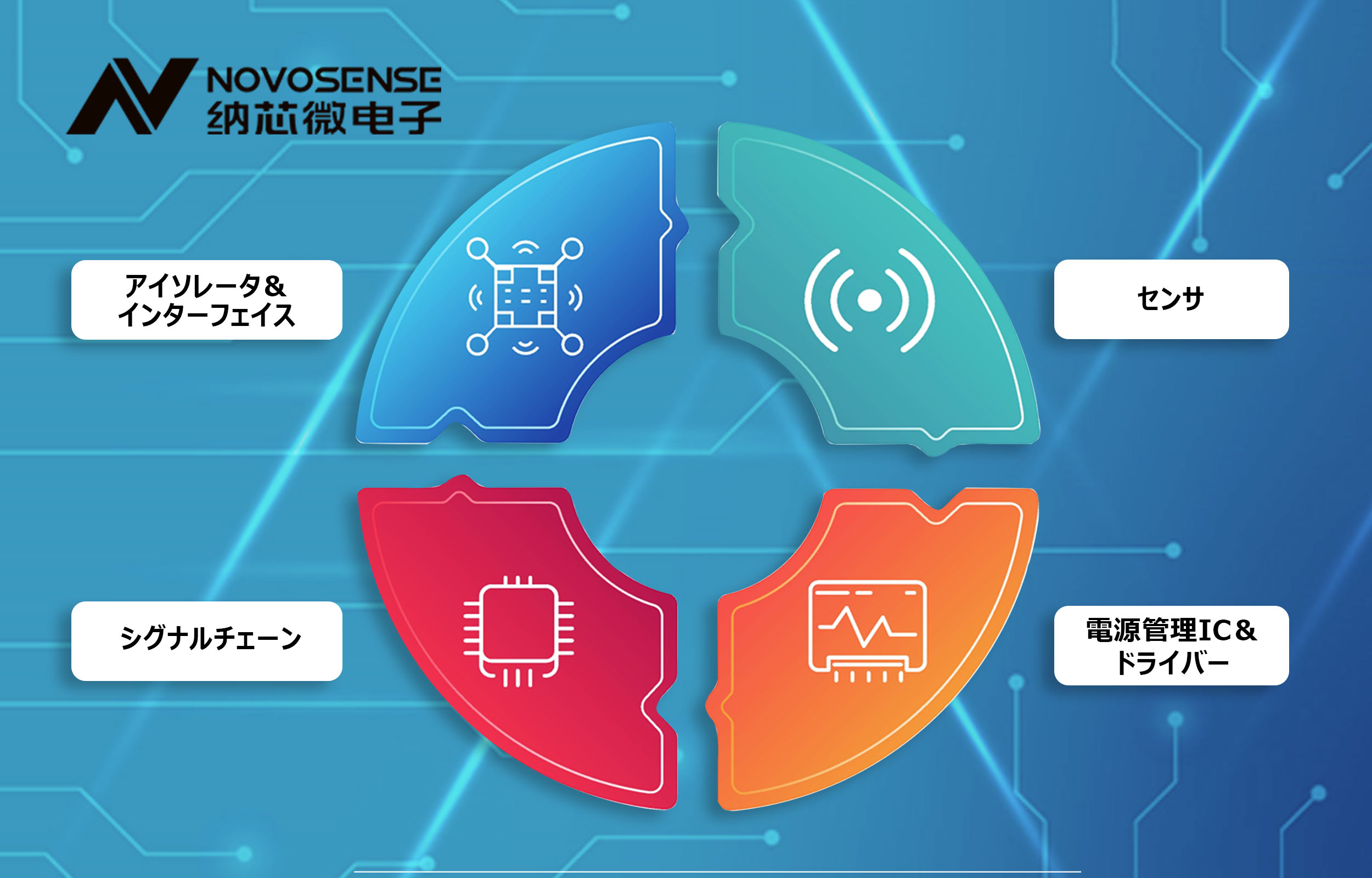 NOVOSENSE社は、中国国内の高性能・高信頼性のアナログ・ミックスドシグナルチップの設計会社です。2013年の設立以来、さまざまな応用シーンを想定した製品開発に注力し、センサー号調整用ASICチップを皮切りに、統合センサーチップ、アイソレーション&インターフェースチップ、ドライバー&サンプリングチップ等を製造。ミックスドシグナル処理、高電圧デジタル絶縁、統合センサー設計の分野で独立した知的財産権と豊富な技術蓄積を持ち、新エネルギー車や産業オートメーションなどのアプリケーションのキーチップとして量産化に成功しました。さまざまな応用シーンに対応した製品開発を強化し続けており、その製品は、情報通信、産業制御、カーエレクトロニクス、家電をカバー。中国国内の有名ブランド顧客に広く使用されています。未来を「感知」し「駆動」し、すべてがつながる「コア」な世界を構築することを使命とし、信号感知技術、システム相互接続技術、電力駆動技術の確固たる基盤をもとに、言号感知チップ、絶縁・インターフェースチップ、駆動・サンプリングチップの業界リーダーとなり、中国における自動車グレードチップのリーディングサプライヤーになることを目指しています。